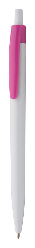 Weißer Kunststoff-Kugelschreiber mit farbigem Clip, blauschreibend. mehr