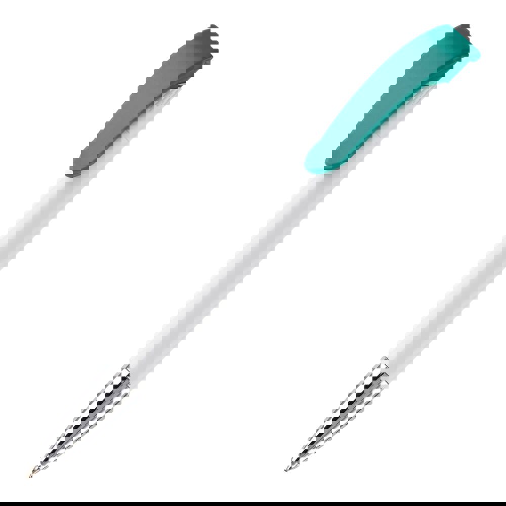Modern geformter Toppoint Kugelschreiber mit Bogenclip und Metallspitze. Hard Colour. Ein Werbeträger mit diversen Möglichkeiten. Ausgestattet mit einer Jumbo Mine für 4,5 km Schreibleistung. Blauschreibend. Made in Germany.