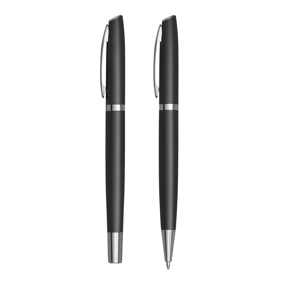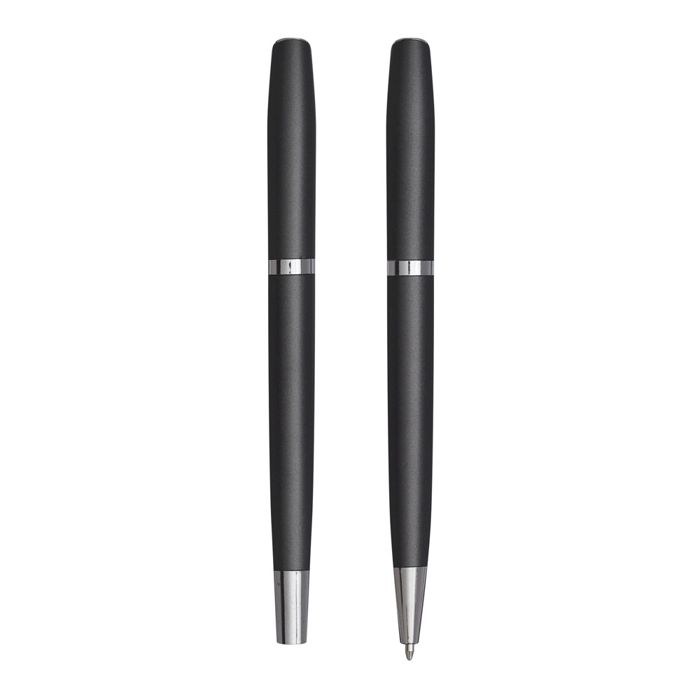 Schreibset ALPHABET, 2-teilig: bestehend aus Kugelschreiber mit Drehmechanismus (schwarzschreibend) sowie Tintenroller mit Verschlusskappe mit Clip (schwarzschreibend), beide Schreibgeräte mit Aluminium-Schaft, in Box