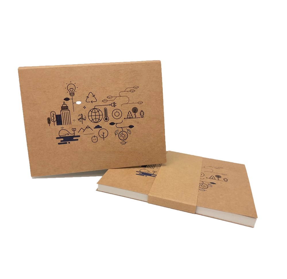 Kartoncover ca 100x75 mm - 4/0c - CMYK brauner Kartoncover 350 gr bitte beachten: Druckbild aufgrund des braunem Papiers abweichend zu Druck auf weißem Papier keine zusätzliche Folien-Kaschierung Haftnotizen 100*x75 mm - 50 Blatt - 2/0c Haftnotizen-Papier recycled - nicht weiß - 80 gr- * = Klebung bei angeschnittenem Druck verkleinern sich die Haftnotizen einzeln mit Papier-Banderole verschlossen
