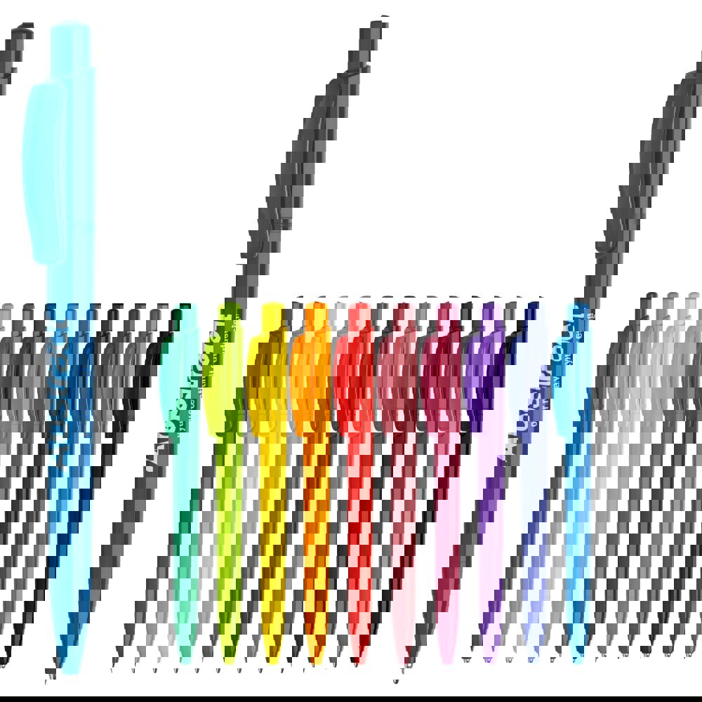 Der Total-Hardcolour Kugelschreiber Kamal hat eine große Druckfläche auf dem Clip und dem Schaft. Mit farbigem Schaft, Drücker und Clip. Druckkugelschreiber ausgestattet mit einer blau schreibenden X20-Refill-Mine. Der Stift besteht aus ABS-Kunststoff und wird in Europa hergestellt. Ab einer Abnahmemenge von 5.000 Stück sind eigene Farbkombinationen möglich.