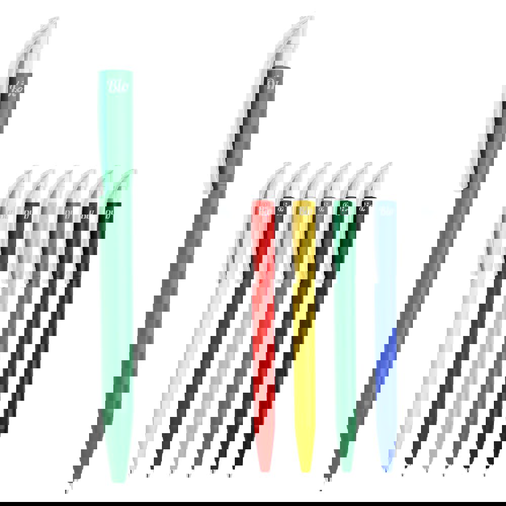 Wenn Biokompostierbarkeit auf Design trifft, entstehen großartige Modelle. Dieser nachhaltige Kugelschreiber S45 Bio besteht aus 75% PLA-Kunststoff. Dies bedeutet, dass der Stift biologisch abbaubar ist. Einschließlich eines farbigen Gehäuses und einem weißem Drücker. Ausgestattet mit einer großen blau schreibenden Refill-Mine. Hergestellt in Europa.