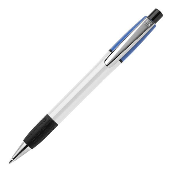 Der klassische und elegante Hardcolor-Semyr-Kugelschreiber mit weißem Schaft und farbigem Oberteil. Der Grip, der Drücker und der Ring im Schaft sind schwarz. Ausgestattet mit einer blau schreibenden Jumbo-Refill-Mine. Der Druckkugelschreiber besteht aus ABS und wird in Europa hergestellt. Ab einer Abnahmemenge von 5.000 Stück sind eigene Farbkombinationen möglich.