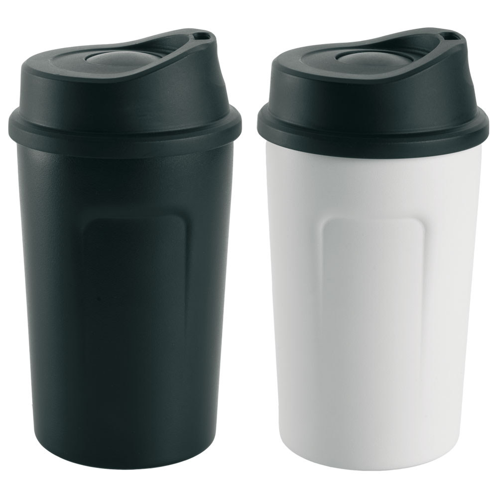 Thermobecher aus Edelstahl in den Farben schwarz und weiß. Der Becher hat ein Volumen von 360 ml. Mit dem praktischen Druckknopf lässt sich die Öffnung schnell verschließen und wieder öffnen. Verpackt in einer Schwarzwolf outdoor Geschenkbox. Volumen: 360 ml Material: Edelstahl, Kunststoff Empfohlene Veredelungstechnik: Lasergravur L1 Maximale Veredelungsgröße: 30 × 50 mm Abmessungen: Ø 8,8 × 16,4 cm