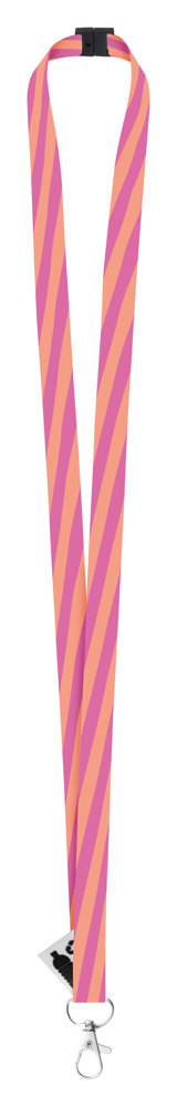 Individuelles Lanyard aus RPET, 15mm breit, mit Metallkarabiner und Panikverschluss. Der Preis ist inkl. Sublimationsdruck auf beiden Seiten. Mindestmenge: 100 Stk.