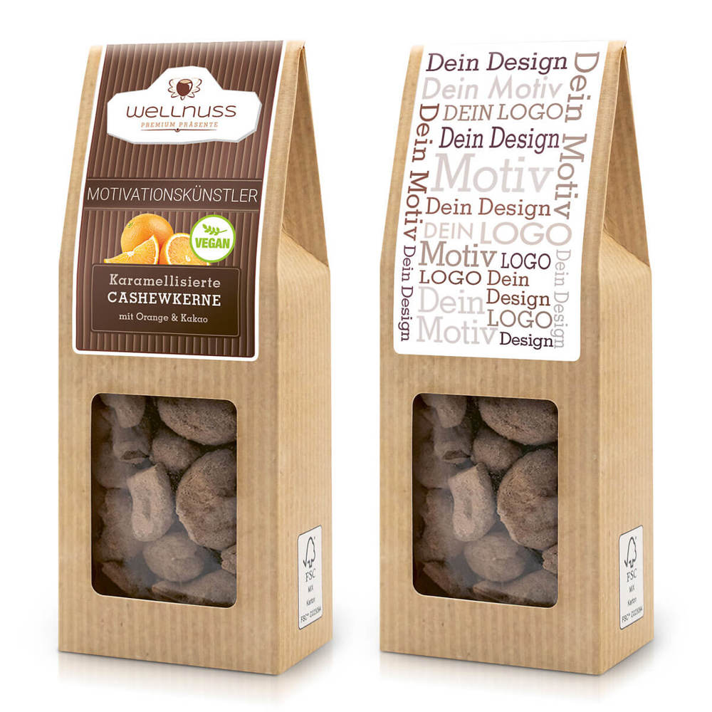 Faltschachtel - Motivationskünstler - Karamellisierte Cashewkerne mit Orange & Kakao