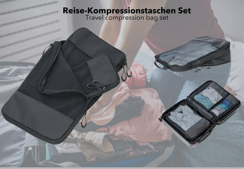 TROIKA Reise-Kompressionstaschen Set TROIKA BLACK PACKING CUBES