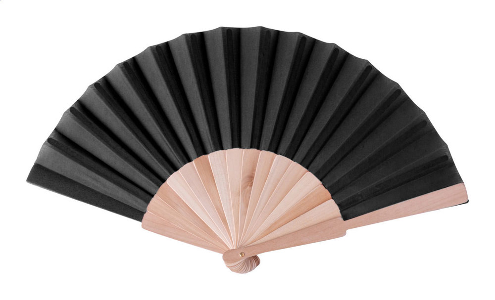 Handfächer aus Polycotton mit Holzrippen.