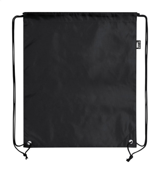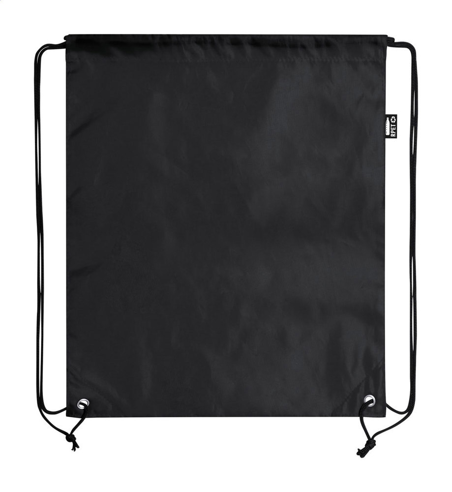 Turnbeutel aus RPET mit verstärkten Ecken. Mit RPET-Label.