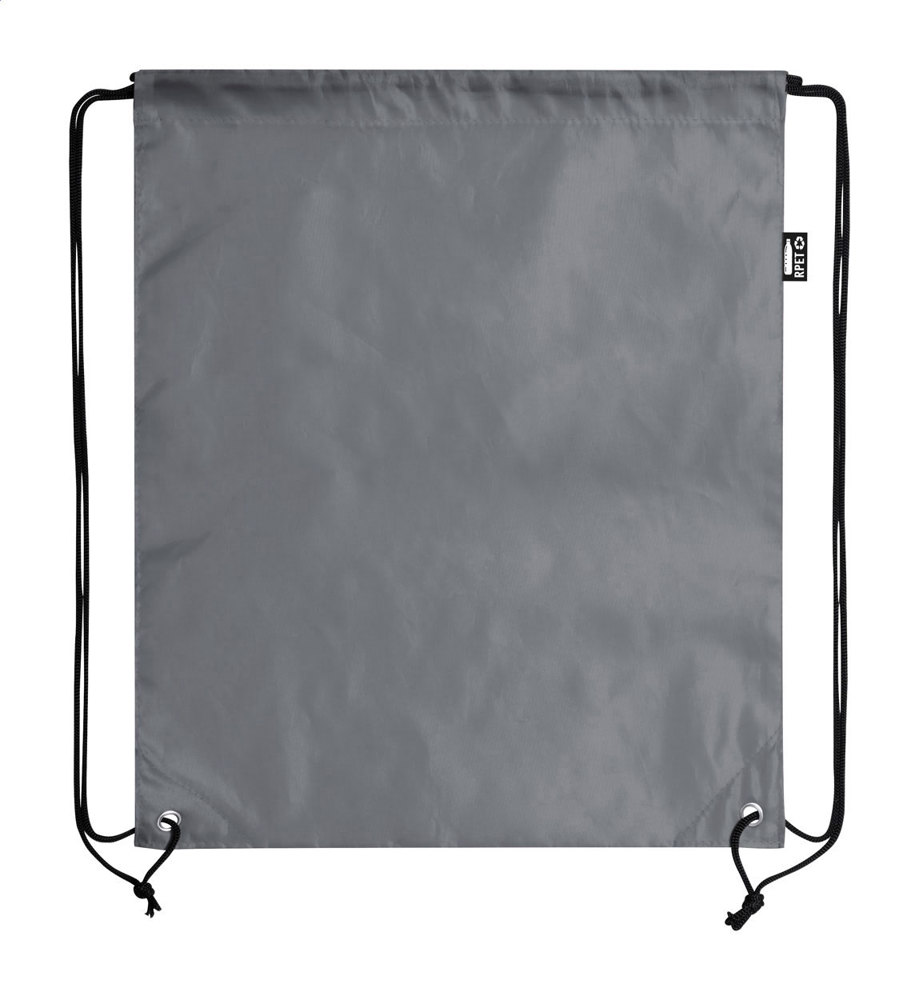 Turnbeutel aus RPET mit verstärkten Ecken. Mit RPET-Label.