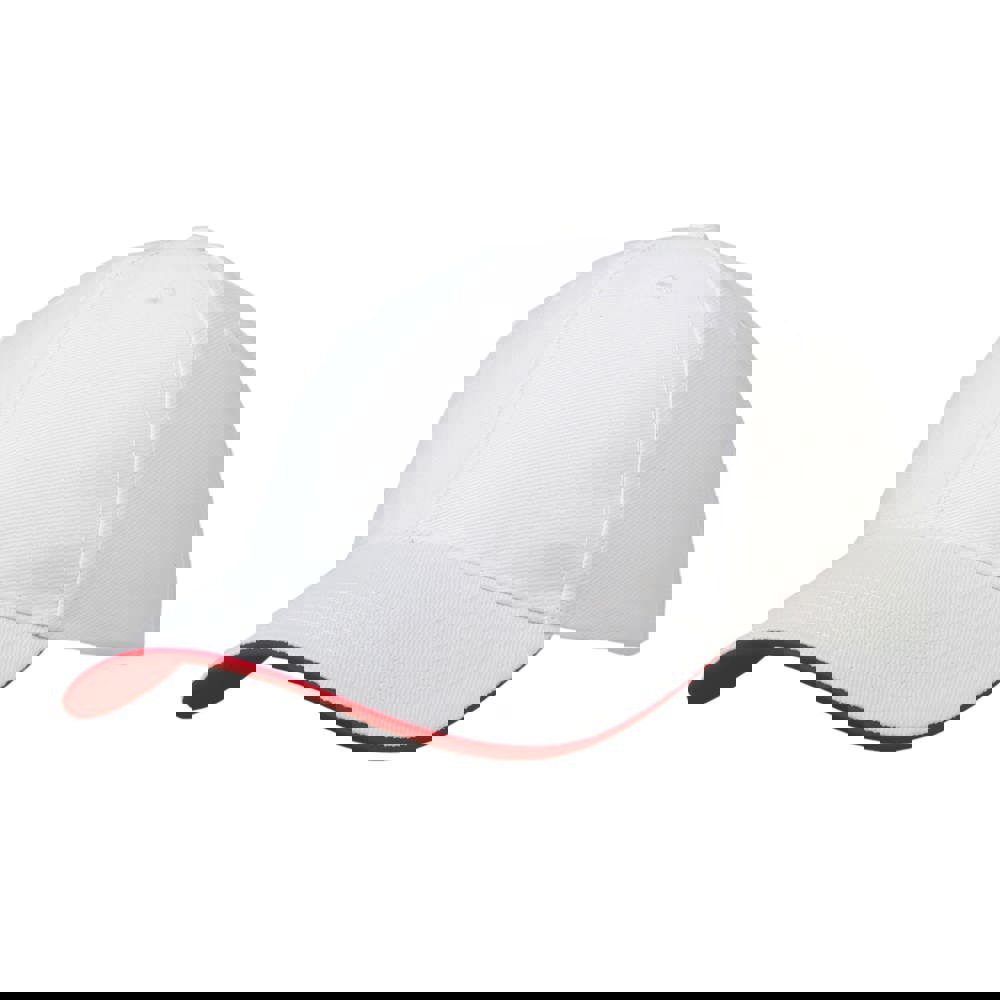 6 panel strap Cap mit Frontfütterung, Kontraststreifen auf Verschluss. Medium profile. Metall buckle Verschluss mit Öse. Ausgeführt in cotton, heavy twill