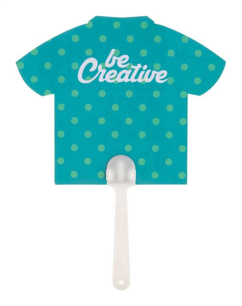 Fächer aus laminiertem Papier mit Kunststoffgriff und vollfarbigen Druck auf beiden Seiten. Der Preis ist inkl. Digitaldruck. Mindestmenge: 100 Stk.