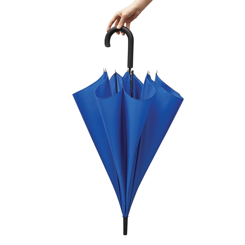 Automatischer Windproof-Stockschirm WIND: Metallstock, Fiberglasspeichen und Metalltips, gummierter Rundhakengriff, Polyester-Pongee-Bespannung, Schließband mit Klettverschluss