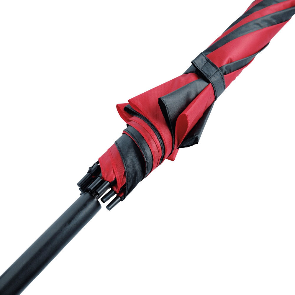 Automatischer Stockschirm DISCO: Metallstock und -speichen, Kunststofftips und -Rundhakengriff, Polyester-Bespannung, Schließband mit Klettverschluss