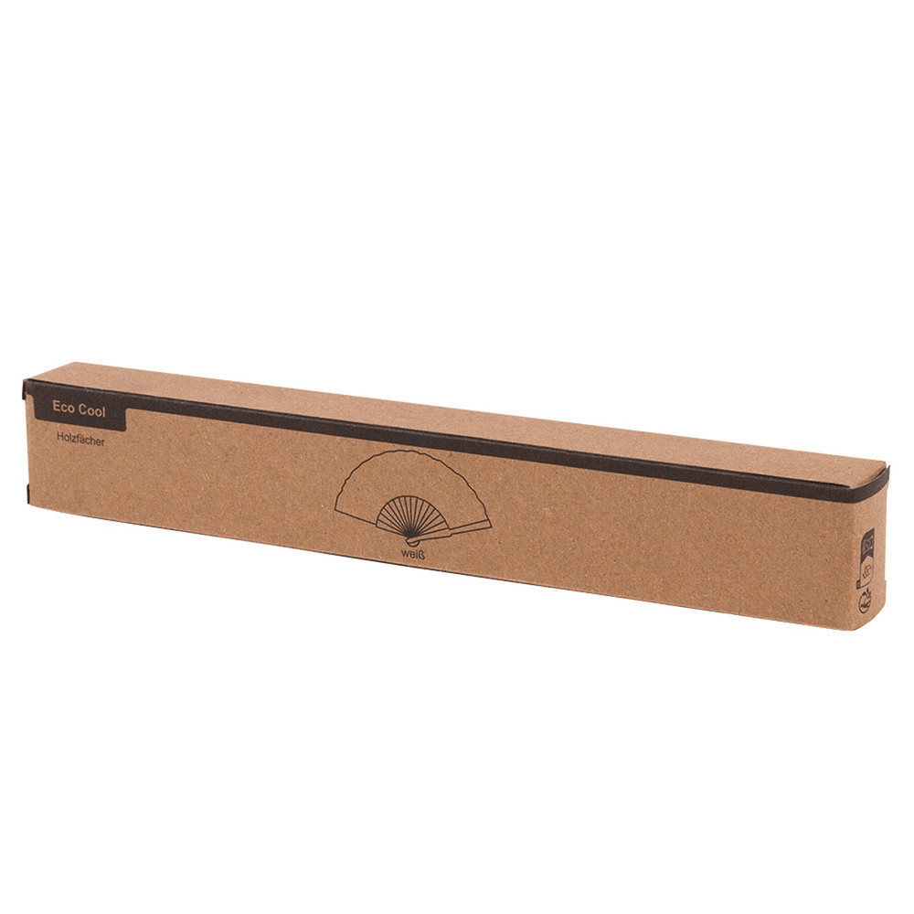 Faltbarer Fächer ECO COOL: stabiler Holzgriff und widerstandsfähige Holzstäbe mit Bespannung aus recyceltem Polyester, in Box