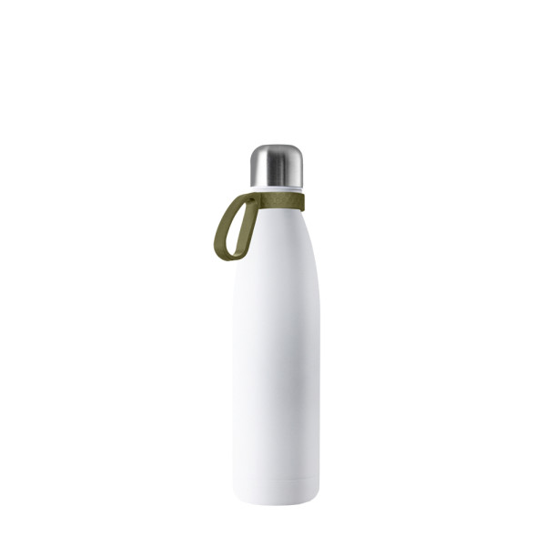 Für Heiß- oder Kaltgetränke, unsere doppelwandige Edelstahlflasche überzeugt durch trendiges und funktionales Design. Durch die Doppelwandigkeit mit Vakuum bleibt das Getränk lange kalt bzw. heiß. Die Trinkflasche kann mit edler mattschwarzer, weißer Pulverbeschichtung oder natürlich silberglänzend bestellt werden. 500 ml Fassungsvermögen stehen zur Verfügung. Setzen Sie ihr Logo stilvoll in Szene auf der Trend Trinkflasche schlechthin.