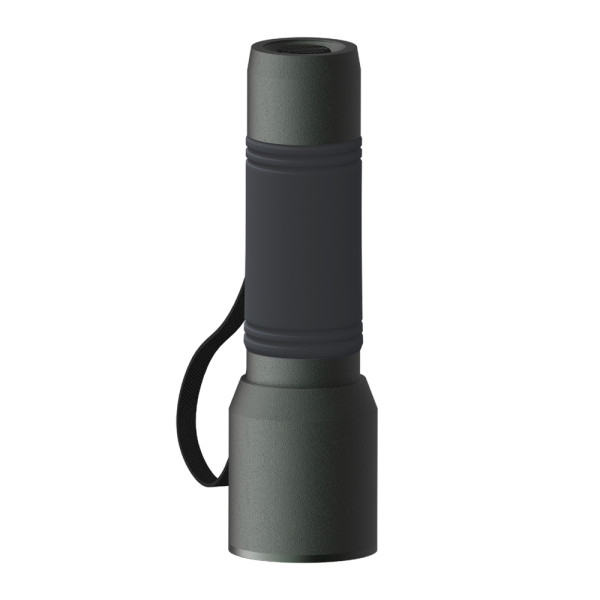 Die wiederaufladbare Taschenlampe REEVES-myFlash 300 ist eine kleinere Variante der leistungsstarken REEVES-myFlash 700. Die Taschenlampe aus recyceltem Aluminium ist ein REFLECTS®-Eigendesign für die Marke REEVES®. Die Taschenlampe ist dunkelgrau eloxiert und kann mit einem Griff-Sleeve kombiniert werden. Die Silikon-Komponenten sind in vielen verschiedenen Farben ab Köln verfügbar. Erstmals kann ein Bambus-Sleeve gewählt werden. Selbstverständlich ist die Taschenlampe auch ohne Griffmanschette erhältlich. Eine textile Griffschlaufe ist inkludiert.