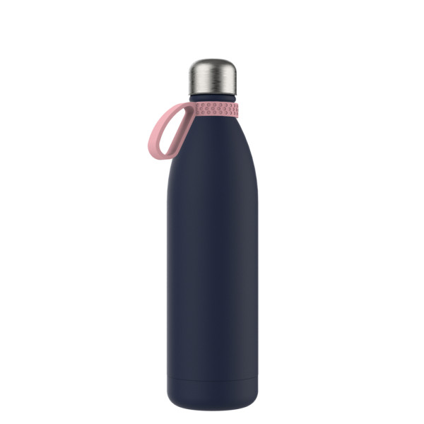Die doppelwandige Thermo Trinkflasche fasst 750 ml und ist somit die größere Alternative zu unserem ursprünglichen Modell. Sie hält Ihre Getränke zuverlässig heiß oder kalt und besticht durch ihre besonders große, prominente Logofläche. Sie ist entweder mit navy-blauer, schwarzer oder weißer Pulverbeschichtung oder in Edelstahl matt silber mit Antifingerprint-Beschichtung erhältlich. Der Drehverschluss schützt vor dem Auslaufen.