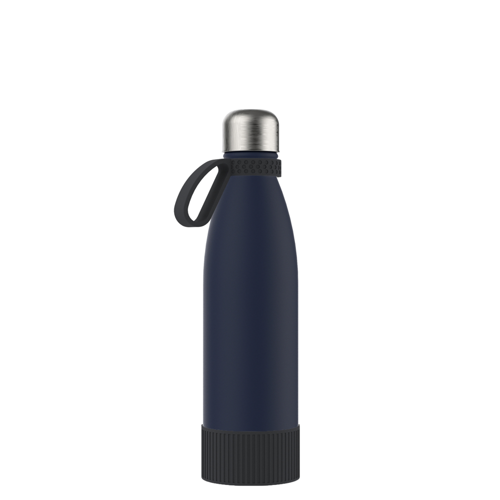 Für Heiß- oder Kaltgetränke, unsere doppelwandige Edelstahlflasche überzeugt durch trendiges und funktionales Design. Durch die Doppelwandigkeit mit Vakuum bleiben ihre Getränke lange kalt bzw. heiß. Die Trinkflasche kann mit navy-blauem, edlen mattschwarzem, weißem Powder Coating oder natürlich silberglänzend bestellt werden. 500 ml Fassungsvermögen stehen zur Verfügung. Setzen Sie ihr Logo stilvoll in Szene auf der Trend Trinkflasche schlechthin.