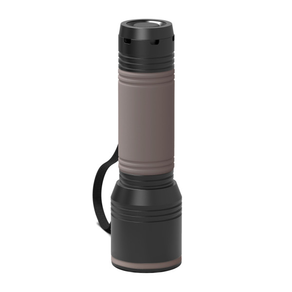 Diese leistungsstarke und wiederaufladbare Taschenlampe aus Aluminium ist ein Eigendesign für die Marke REEVES aus dem Hause REFLECTS. Die Taschenlampe ist silbern oder schwarz eloxiert erhältlich, hat ein schwarzes Griffband und kann mit einem Griff-Sleeve aus Silikon und/oder einem Silikonring kombiniert werden. Die Silikonkomponenten sind in vielen verschiedenen Farben ab Köln verfügbar. Selbstverständlich ist sie auch ohne Silikon-Komponenten erhältlich.