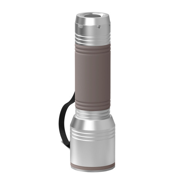 Diese leistungsstarke und wiederaufladbare Taschenlampe aus Aluminium ist ein Eigendesign für die Marke REEVES aus dem Hause REFLECTS. Die Taschenlampe ist silbern oder schwarz eloxiert erhältlich, hat ein schwarzes Griffband und kann mit einem Griff-Sleeve aus Silikon und/oder einem Silikonring kombiniert werden. Die Silikonkomponenten sind in vielen verschiedenen Farben ab Köln verfügbar. Selbstverständlich ist sie auch ohne Silikon-Komponenten erhältlich.