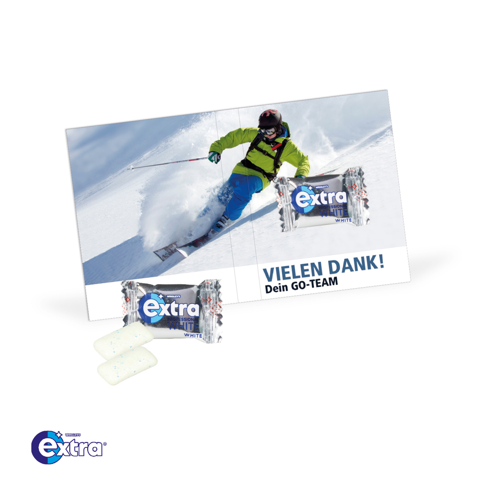 Süße Grüße mit optimaler Werbefläche! Süße Grußkarte mit viel Platz für Ihre individuelle Werbebotschaft. Wählen Sie Ihre Wunschfüllung aus einer Vielzahl beliebter Premium-Varianten. Der Werbeerfolg ist Ihnen damit sicher!. Produktdetails: Werbe-Klappkarte mit süßer Füllung. Nachhaltigkeit: Für jede Bestellung mit uns wird ein Baum über GROW MY TREE gepflanzt. Wir verwenden FSC® zertifizierten Karton aus nachhaltiger Forstwirtschaft und anderen kontrollierten Quellen.