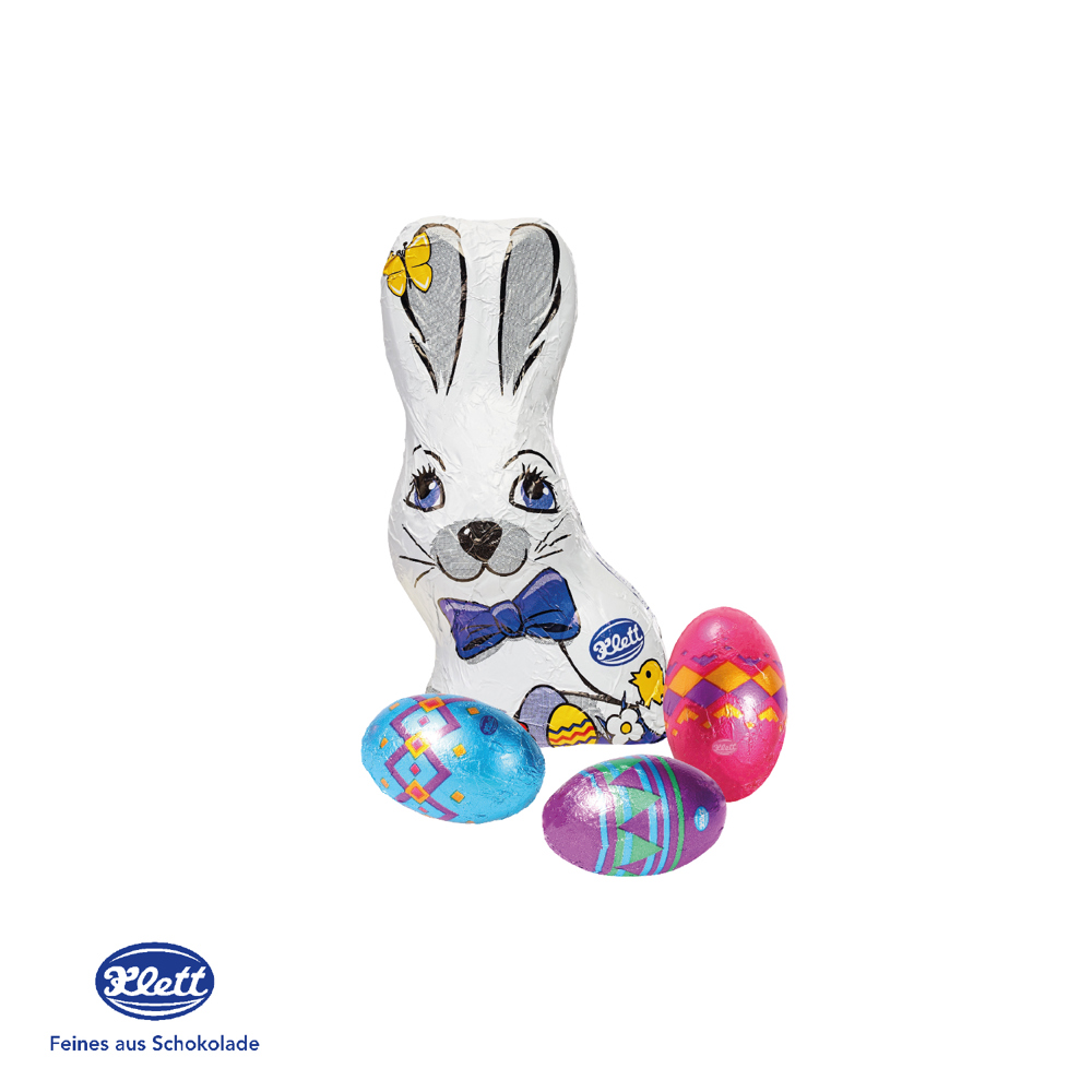 Oster-Highlight für Kunden und Mitarbeiter! Das Osternest mit leckeren Vollmilch Schokoladeneiern und einem feinen 40 g Osterhasen ist individuell bedruckbar. Liebevoll von Hand gefertigt und mit Ostergras dekoriert entsteht ein wunderbares Osterpräsent. Produktdetails: Schokoladenmischung von Klett, in einem individuell bedruckbaren Osternest aus hochwertiger Kartonage, mit Ostergras dekoriert. Nachhaltigkeit: Für jede Bestellung mit uns wird ein Baum über GROW MY TREE gepflanzt. Wir verwenden FSC® zertifizierten Karton aus nachhaltiger Forstwirtschaft und anderen kontrollierten Quellen.