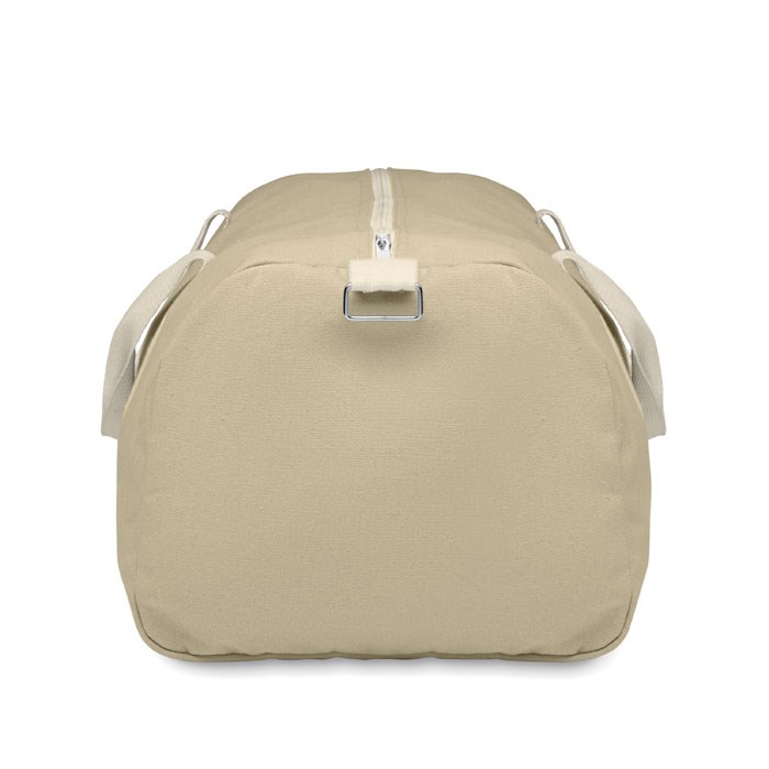 Große Tasche aus recycelten Materialien (60% recycelte Baumwolle, 40% recycelter Polyester) in 320 g/m². Tragegriffe aus natürlichem Baumwollgewebe. Verstellbarer und abnehmbarer Schultergurt.