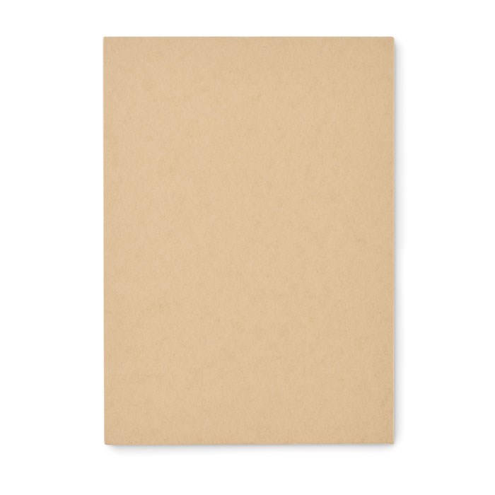Schreibset mit recyceltem Karton-Cover. 70 Blatt liniertes Recyclingpapier, 1 Haftnotizblock und 5 Markerblöcke. Kugelschreiber mit Schaft aus Papier und ABS-Details, ABS-Anspitzer, 2 Holzbleistifte, Radierer, Holzlineal 15 cm und PP-Winkelmesser.