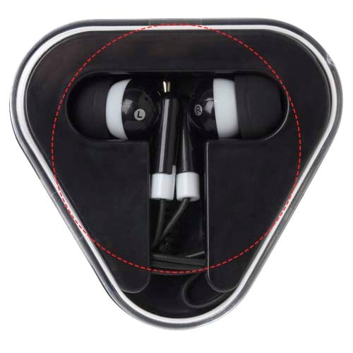 Die Rebel Ohrhörer sind einfache Ohrhörer, die mit jedem Standard-Audiogerät mit einer 3,5-mm-Audiobuchse verwendet werden können. Die Ohrhörer werden in einem dreieckigen Etui mit Kabelaufwicklung aus recyceltem Kunststoff geliefert, das sie gut vor äußeren Beschädigungen schützt.