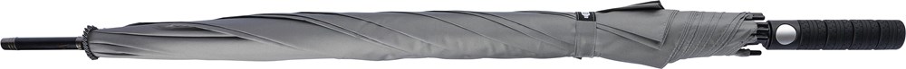 rPET 190T automatischer Golfschirm (27 Zoll) mit acht Paneelen und einem Fiberglasgestell. Mit Druckknopföffnung und rPET-Etikett auf dem Klettverschluss. Winddicht.