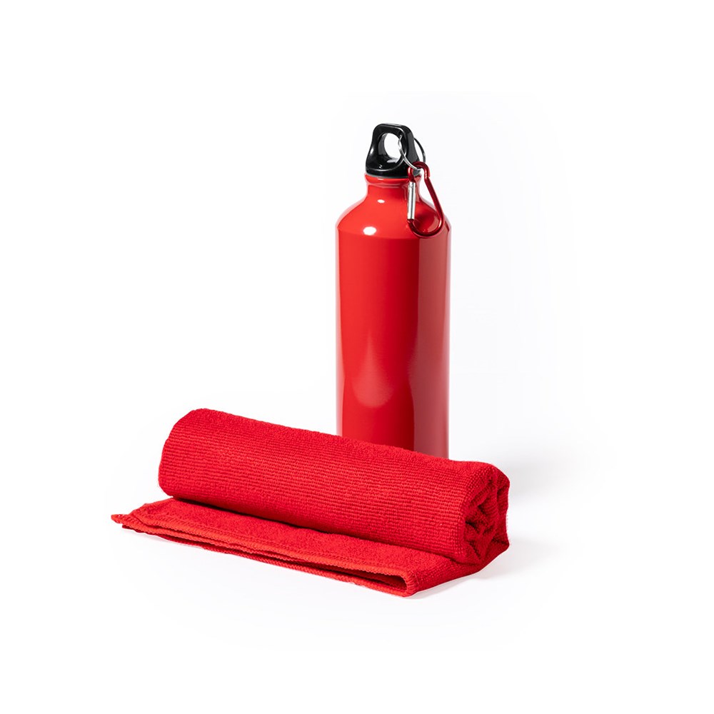 Passendes Set aus Flasche und Handtuch. Einschließlich:Flasche mit 800 ml Fassungsvermögen und glänzendem Aluminiumgehäuse. Mit aufschraubbarem Sicherheitsdeckel und Metallkarabiner für die Tragbarkeit.Saugfähiges Handtuch aus Mikrofaser von 160g/m2 und in der Größe 40x90 cm.Das Set ist in einer breiten Palette von Farben erhältlich und wird in einer passenden Pappschachtel präsentiert.