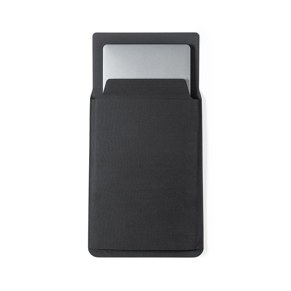 Computertasche aus 600D RPET-Polyester hergestellt aus recyceltem Kunststoff, der die Wiederverwendung von Kunststoffabfällen fördert und einen Beitrag zur Nachhaltigkeit unseres Planeten leistet. Mit Magnetverschluss und RPET-Logo. Aufklappbare Innenseite mit Mauspad und abgewinkeltem Computerhalter. Präsentiert in einer attraktiven Einzelverpackung.