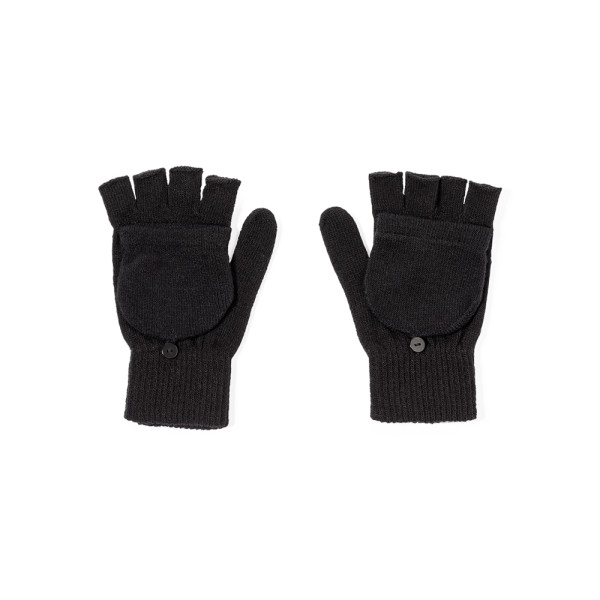 Praktisches Paar Handschuhe aus warmem, weichem Acryl. Mit Klappe, um sie in Fäustlinge zu verwandeln, ideal zum Schutz vor Kälte bei gleichzeitiger guter Beweglichkeit. Eine Erwachsenengröße. Präsentiert in einer individuellen Recycling-Tasche.