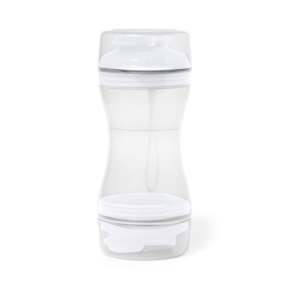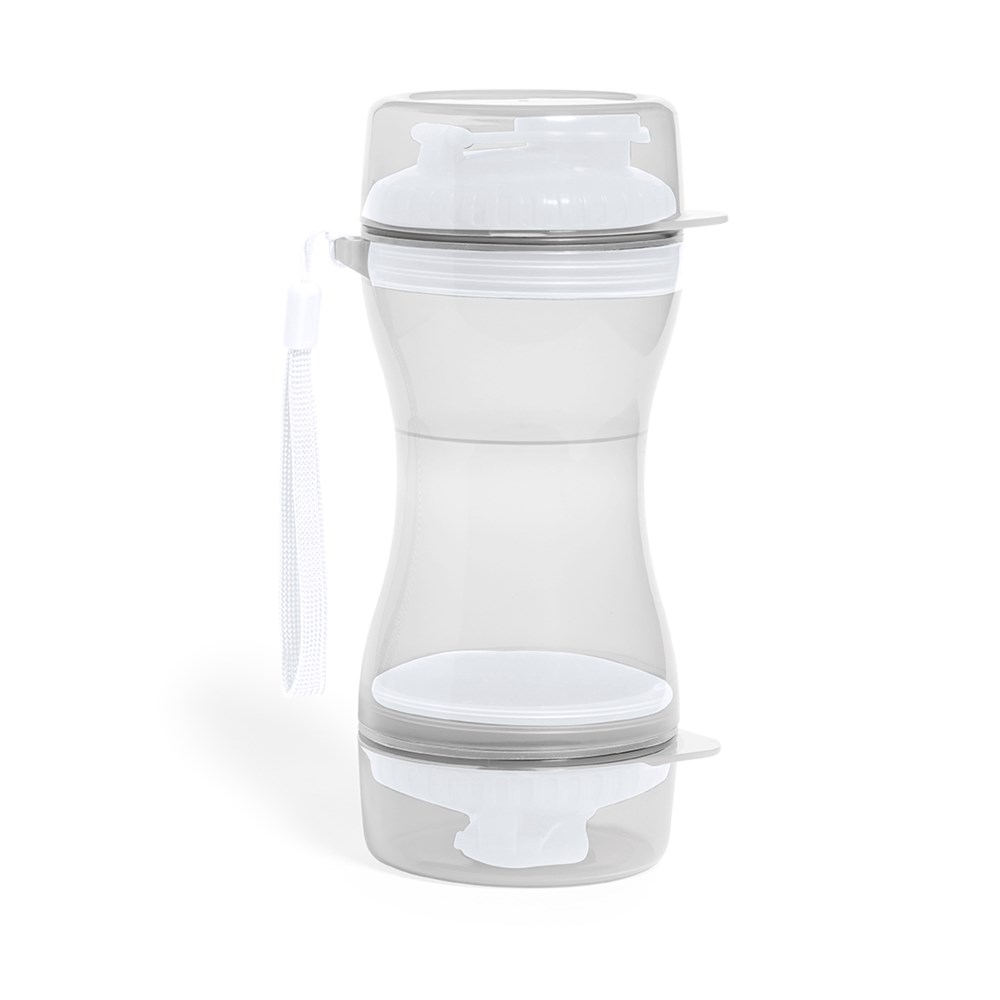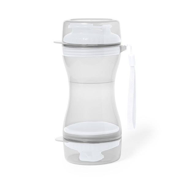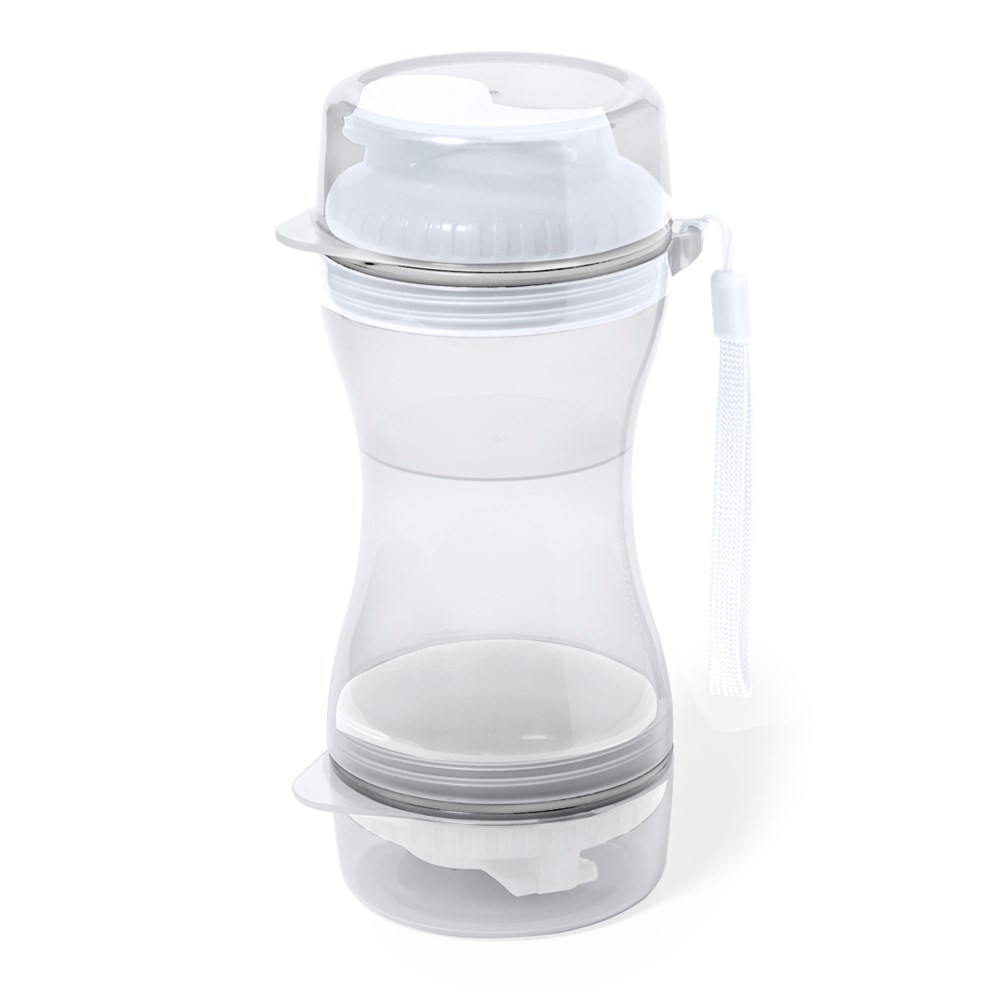 Praktisches Set für Haustiere aus haltbarem ABS. Mit zwei getrennten Fächern von 330 ml und 280 ml, mit Schraubverschluss für die Sicherheit und Spender. Enthält auch zwei Deckel für die Verwendung als Schüssel. Einzeln verpackt in einer Kraft-Design-Box.