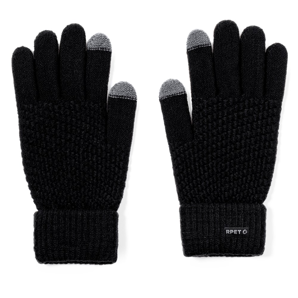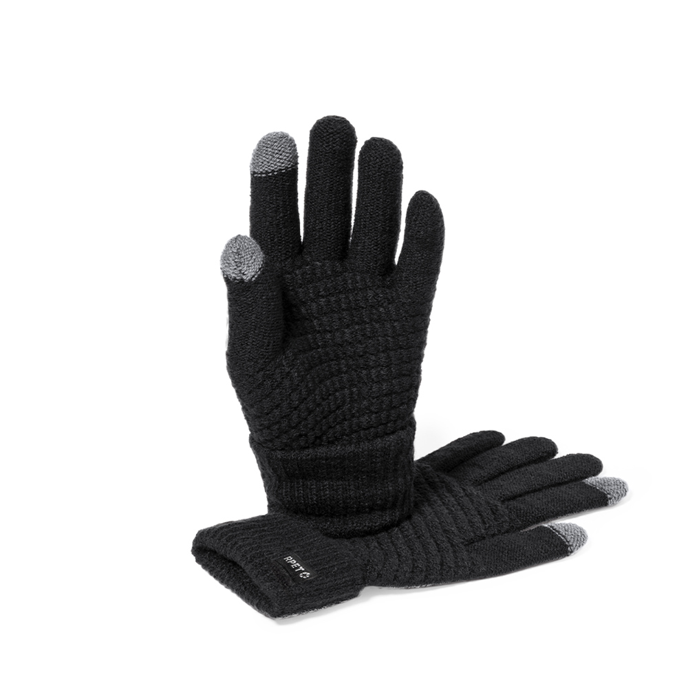 Praktisches Paar Handschuhe für Touchscreen-Geräte. Hergestellt aus warmem, weichem RPET-Polyester-Finish. Touch-Funktion an Zeigefinger und Daumen. Einheitsgröße für Erwachsene, mit RPET-Embleem auf dem Außenetikett.Das RPET-Material wird aus recyceltem Kunststoff hergestellt, um die Wiederverwendung von Kunststoffabfällen zu fördern und die Nachhaltigkeit unseres Planeten zu unterstützen.