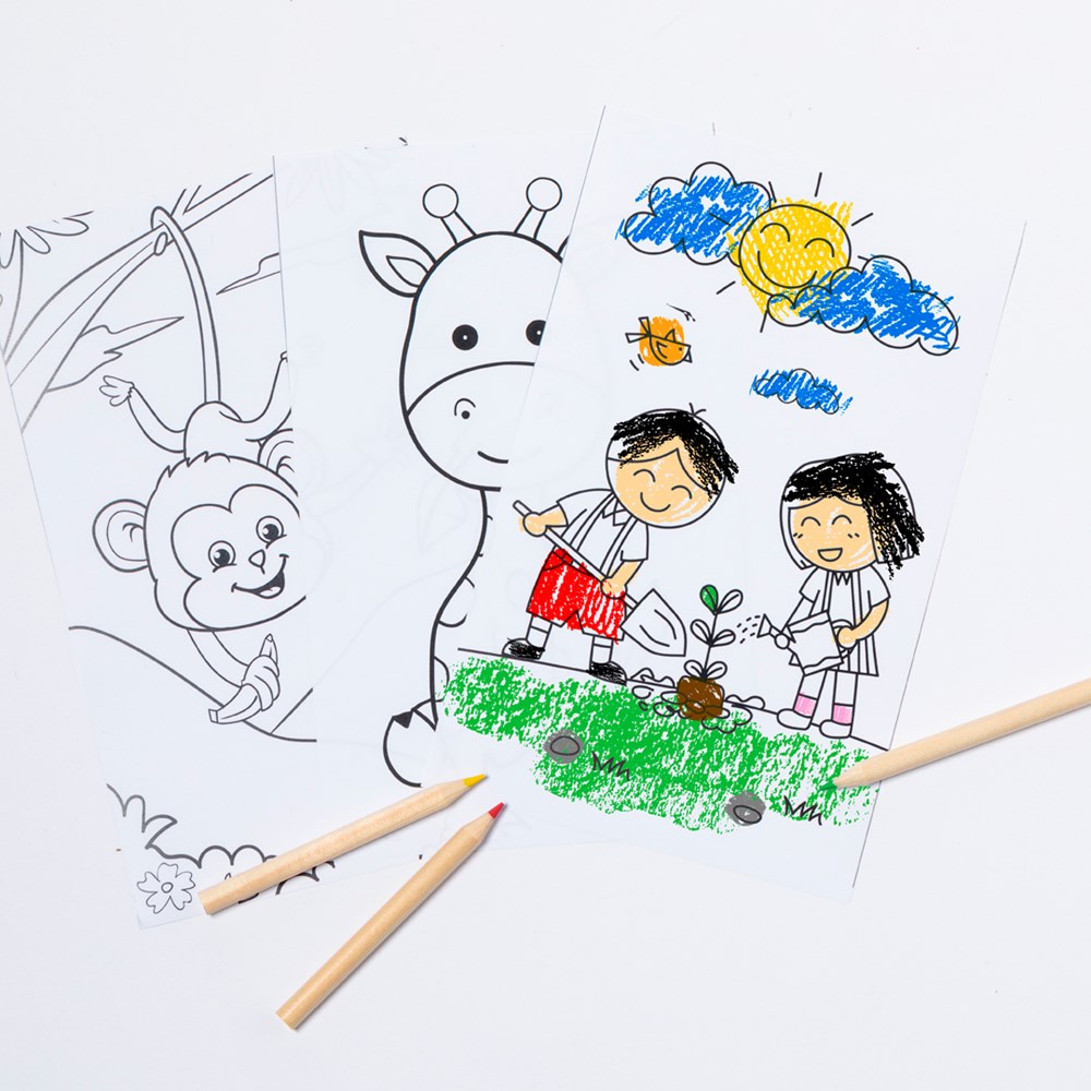 Malset aus recyceltem Karton. Inklusive einem verspielten Satz Zeichnungen und Buntstiften in... mehr