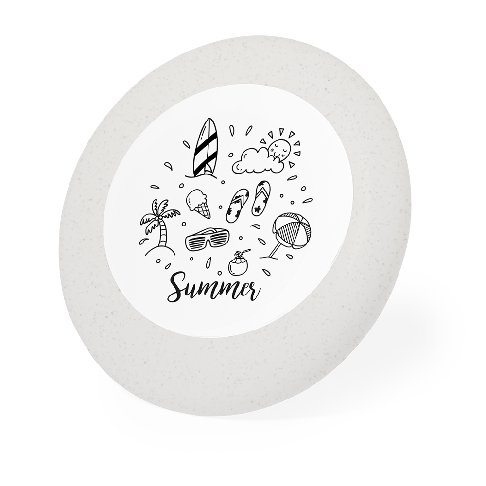 Origineller, anpassbarer Frisbee aus Weizenrohr. Lustiges Set aus Buntstiften und Frisbiee, mit einem Bereich zum Ausmalen der ursprünglichen Naturzeichnung. Präsentiert in einer recycelten Papiertüte. Inklusive: Frisbee mit Naturzeichnung zum Ausmalen. Box mit 6 Buntstiften in verschiedenen Farben.