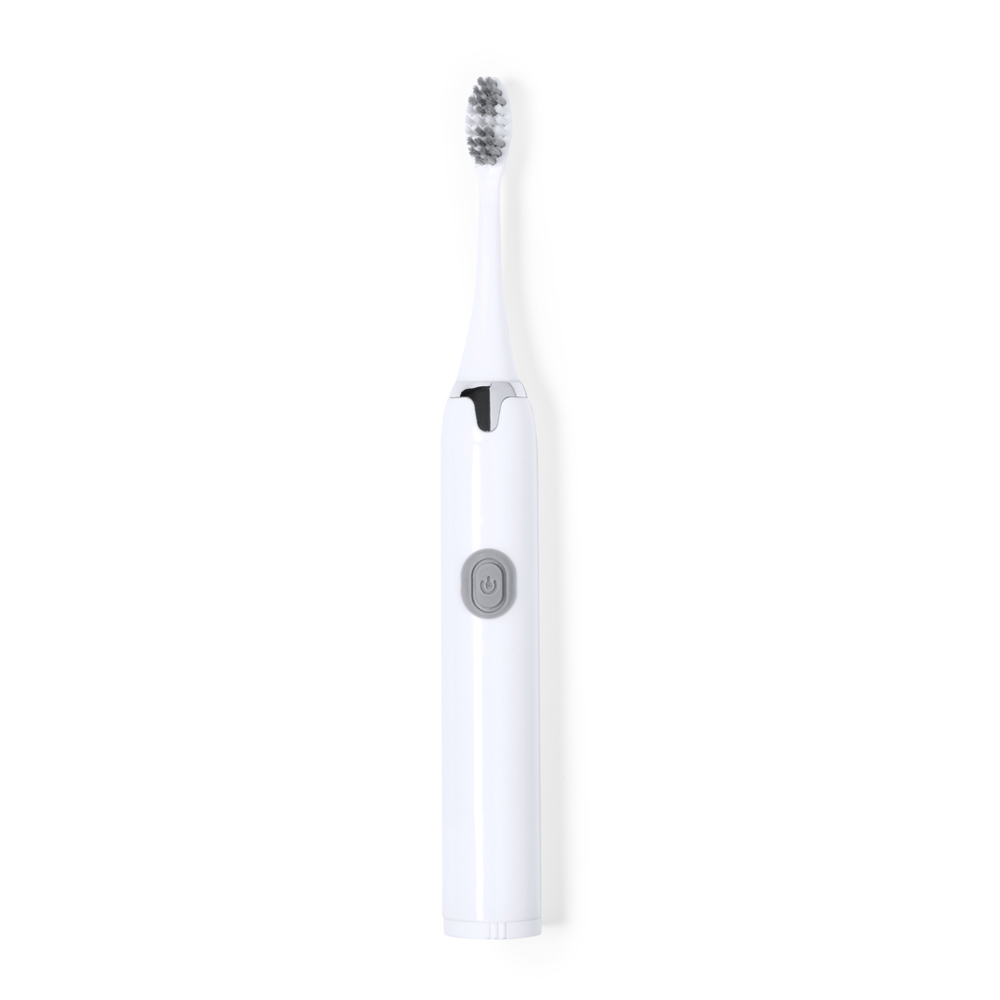 Praktische und tragbare elektrische Zahnbürste. Effiziente Reinigung dank Vibrationsfunktion und angenehmen Borsten. Betrieben durch 1 AA-Batterie (nicht im Lieferumfang enthalten), die durch die Basis eingesetzt wird. In den Farben Weiß und Silber, präsentiert in einer Kraftpapier-Designbox.