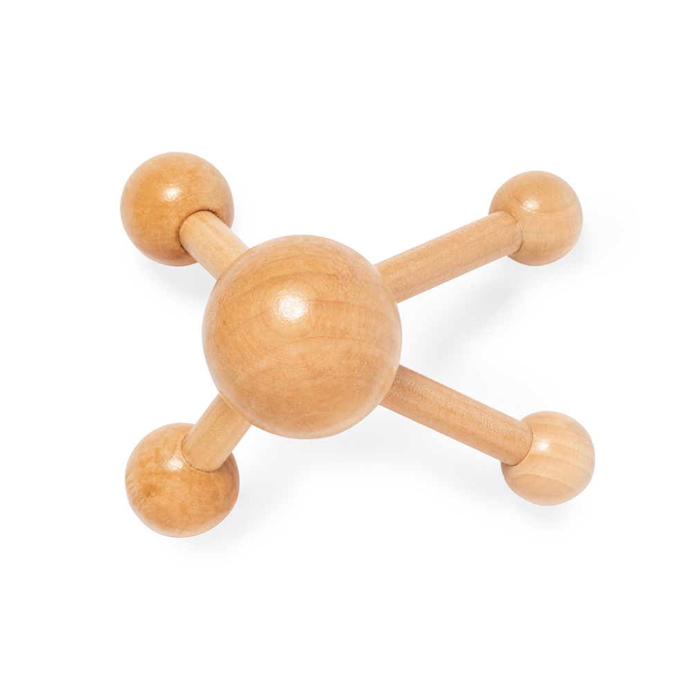 Massagegerät aus Naturholz. Entwickelt, um Linderung und Wohlbefinden zu bieten. Sein ergonomischer Griff sorgt für eine komfortable Handhabung, während seine vier Holzkugeln effizient sind und für eine revitalisierende Massage sorgen, die Muskelverspannungen löst. Präsentiert in einer individuellen Kraft-Designbox.