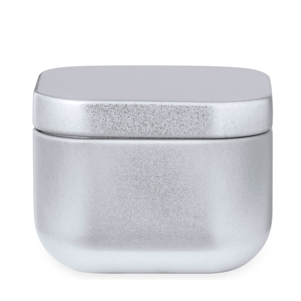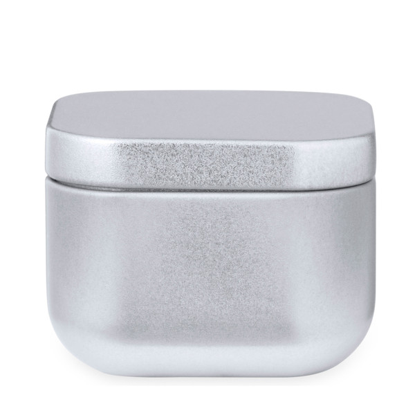 Duftkerze im Metallgefäß und in eleganten Farben, mit Vanilleduft. Präsentiert in einer individuellen Kraft-Designbox.