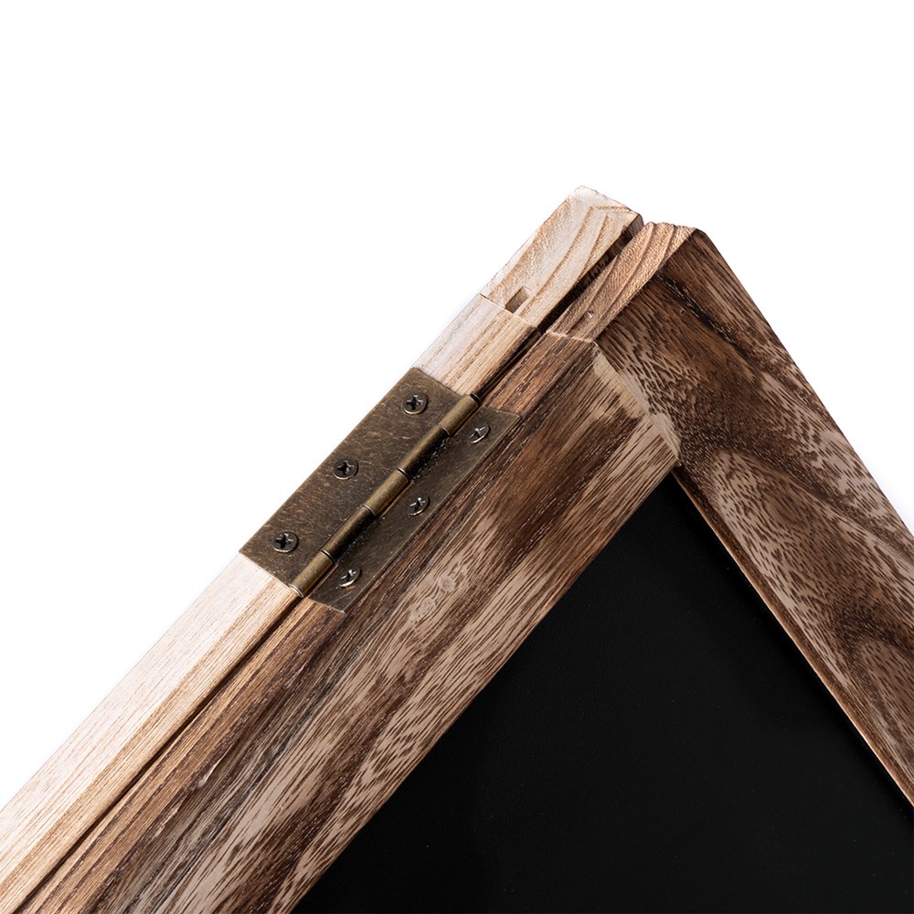 Mehrzwecktafel aus Holz. Passt in jede Umgebung und ist dank der Faltbarkeit leicht zu transportieren. Beidseitig große Schreibfläche mit einer Gesamtgröße von 106 cm Höhe und 59 cm Breite. Präsentiert in einer Kraft-Design-Box.