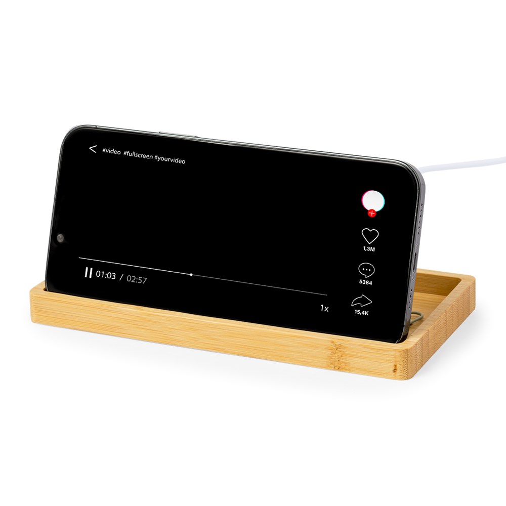Kabelloses Ladegerät und Organizer 15W, aus Bambus. Mit Smartphone-Halterung und zusätzlichen... mehr