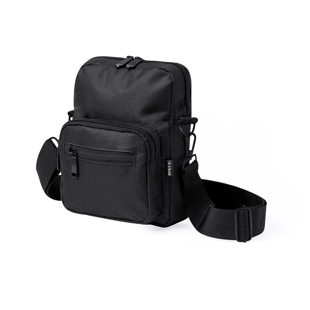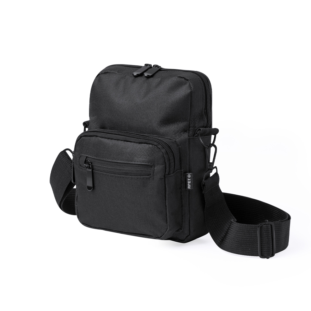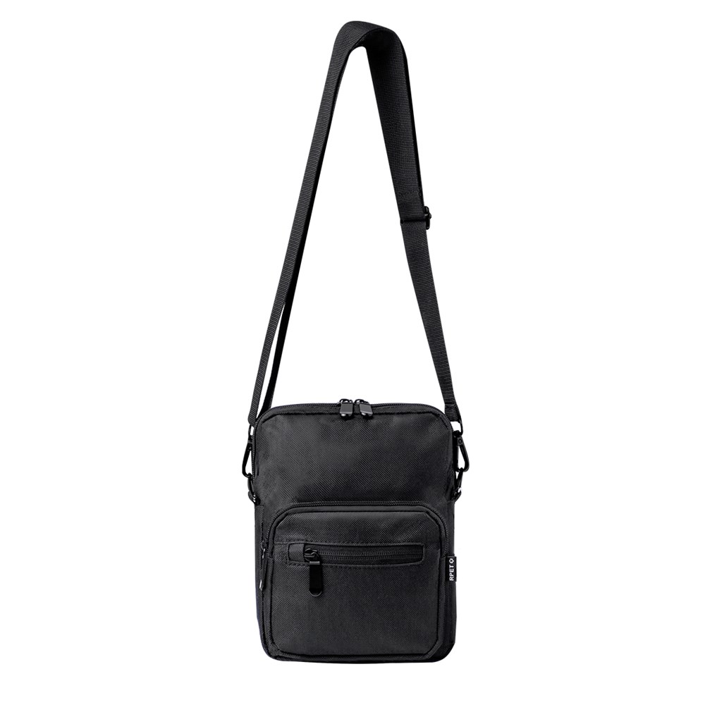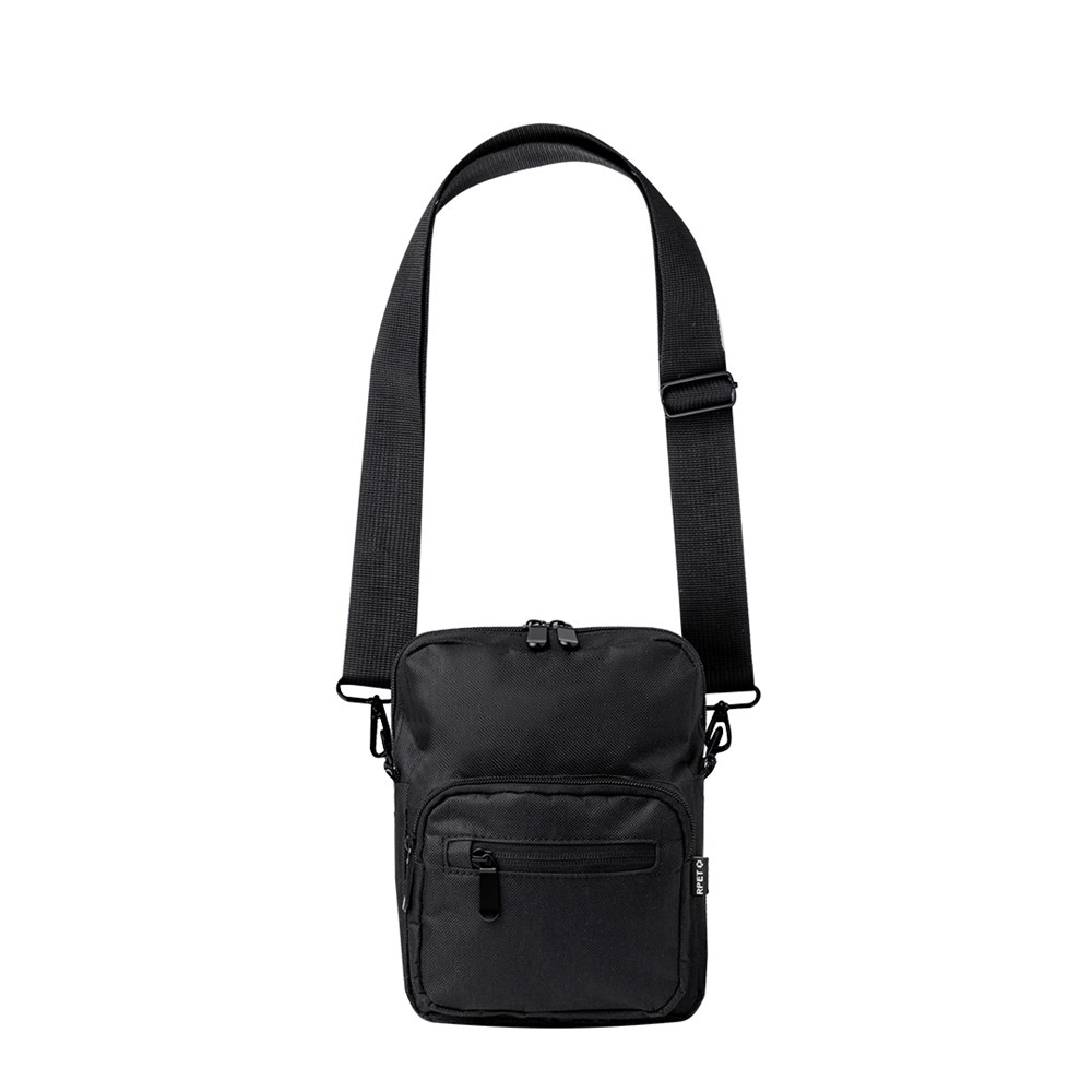 Umhängetasche aus RPET 600D-Polyester mit zentraler Reißverschlusstasche und doppeltem Reißverschluss sowie zwei Vorderfächern mit Schnellzugriff und Reißverschluss. Ausgestattet mit einem verstellbaren Riemen für mehr Komfort und einem RPET-Etikett. Einzeln in einer recycelten Tasche präsentiert. Umhängetasche aus RPET 600D-Polyester mit zentraler Reißverschlusstasche und doppeltem Reißverschluss sowie zwei Vorderfächern mit Schnellzugriff und Reißverschluss.