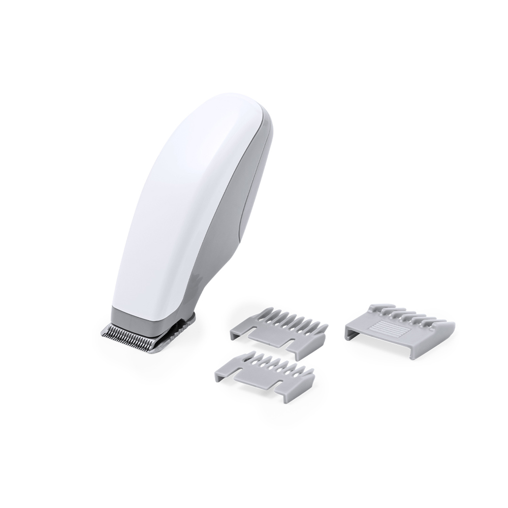 Praktischer und kompakter Haartrimmer, geeignet für Kopf, Bart und Körper. Hergestellt aus widerstandsfähigem ABS, mit Metallklingen. Batteriebetrieben (1xAA nicht im Lieferumfang enthalten), so dass er überall leicht zu benutzen ist. Inklusive 3 austauschbaren Kämmen mit verschiedenen Schnittlängen von 2 bis 10 mm. Präsentiert in einer Kraft-Design-Box, mit Bedienungsanleitung in Spanisch und Englisch.