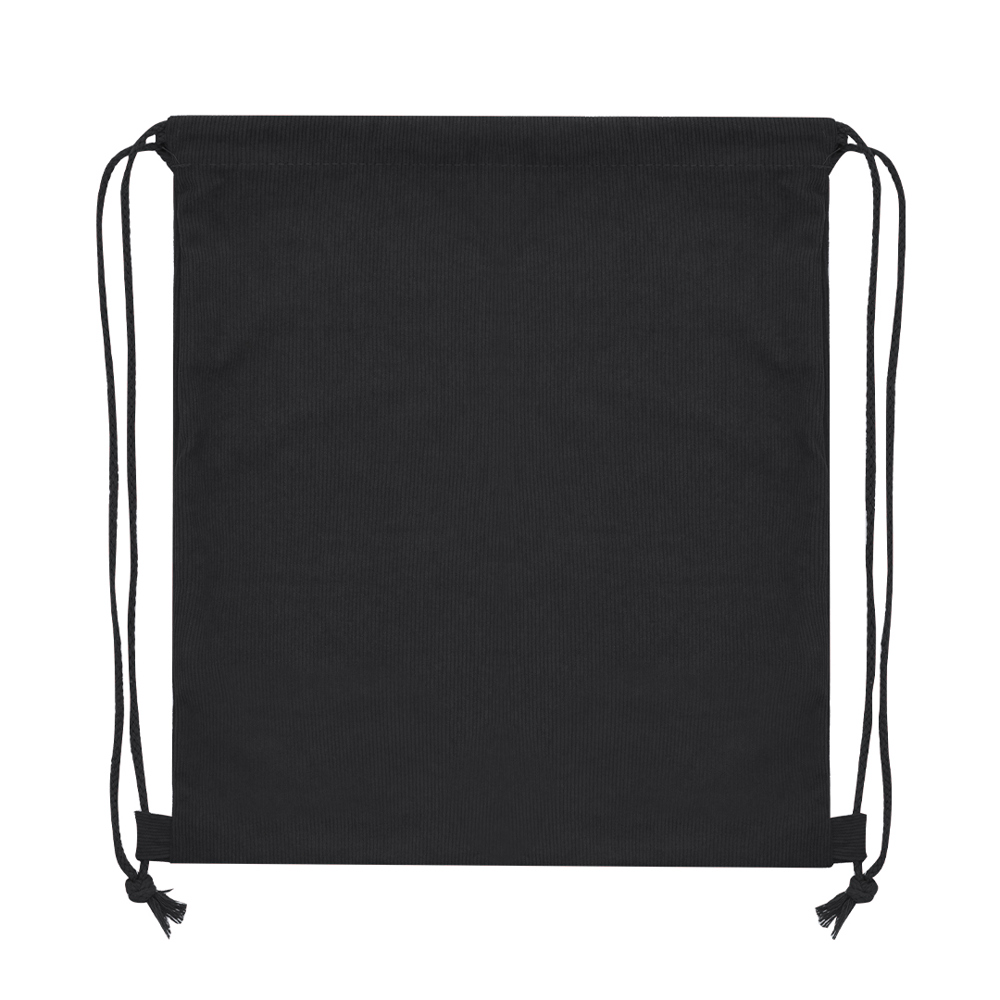 Rucksack mit Kordelzug aus strapazierfähigem Polyestercord. Abgenäht, mit passenden Kordeln und seitlichen Verstärkungen. Erhältlich in einer breiten Palette von Farben.