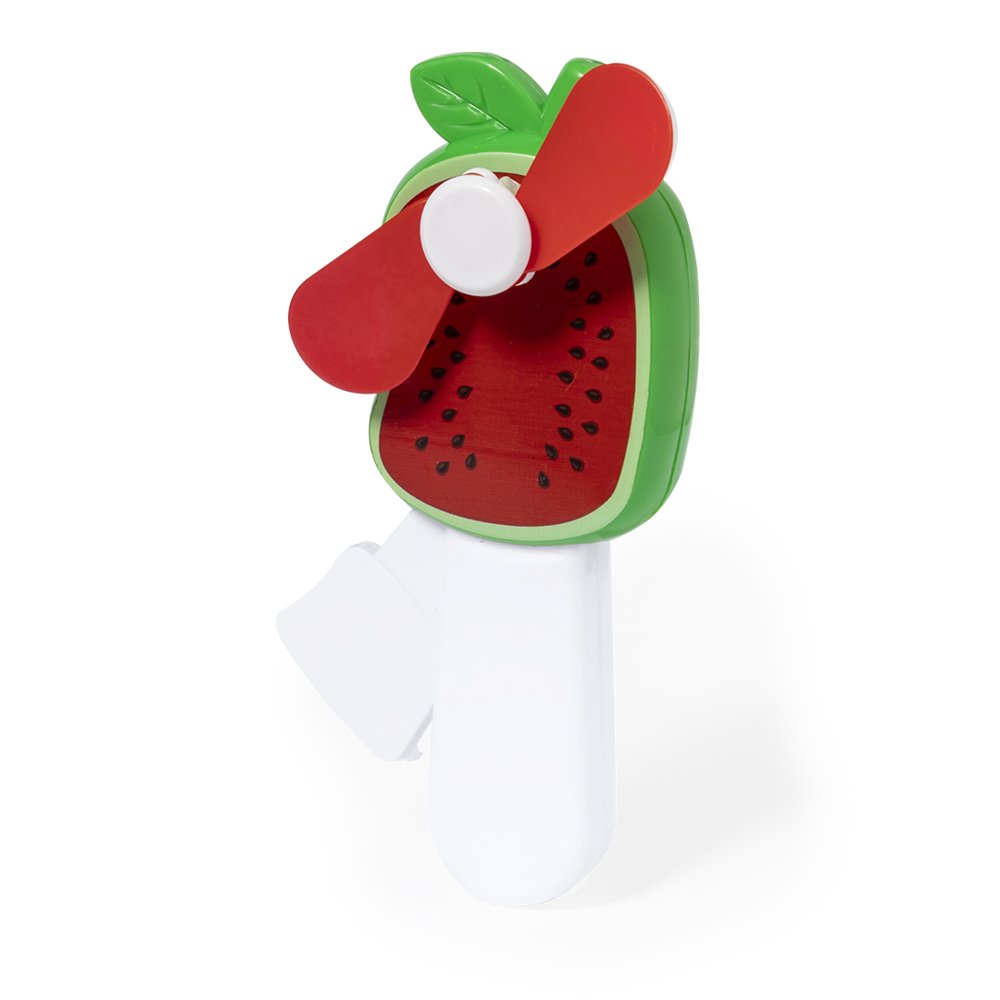 Ventilator in lustigen Fruchtformen, hergestellt aus widerstandsfähigem ABS. Manuelle Bedienung durch ständiges Drücken des im Griff integrierten Hebels zum Bewegen der Flügel. Erhältlich in den Designs Erdbeere, Ananas, Traube, Wassermelone oder Orange. Einzeln verpackt in einer recycelten Tasche.