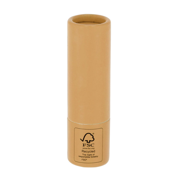 Lippenbalsam aus FSC-zertifiziertem recyceltem Karton. Vanilleduft. SPF15-Schutz. Dermatologisch getestet. FSC®-Label auf der Verpackung.