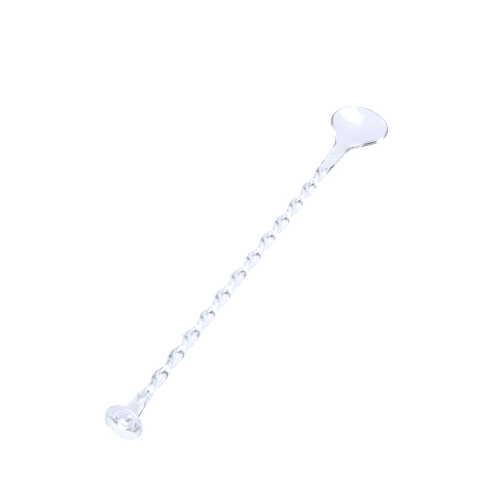Cocktailstab für verschiedene Getränke. 21 cm lang und mit transparentem Spiraldesign. Mit flachem Ende für Bedruckung sowie kreisförmigem Kopfteil für das Logo.