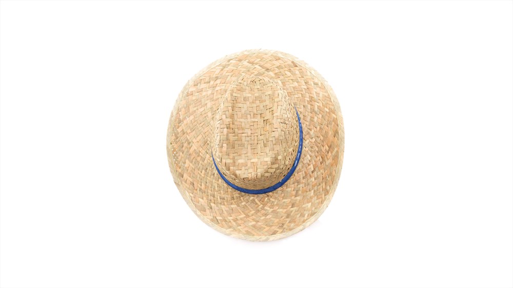 Strohhut. Er ist aus geflochtenem Stroh in natürlicher grüner Farbe hergestellt und durch seine Machart atmungsaktiv. Er hat ein Innenband, um ihn bequemer zu machen.